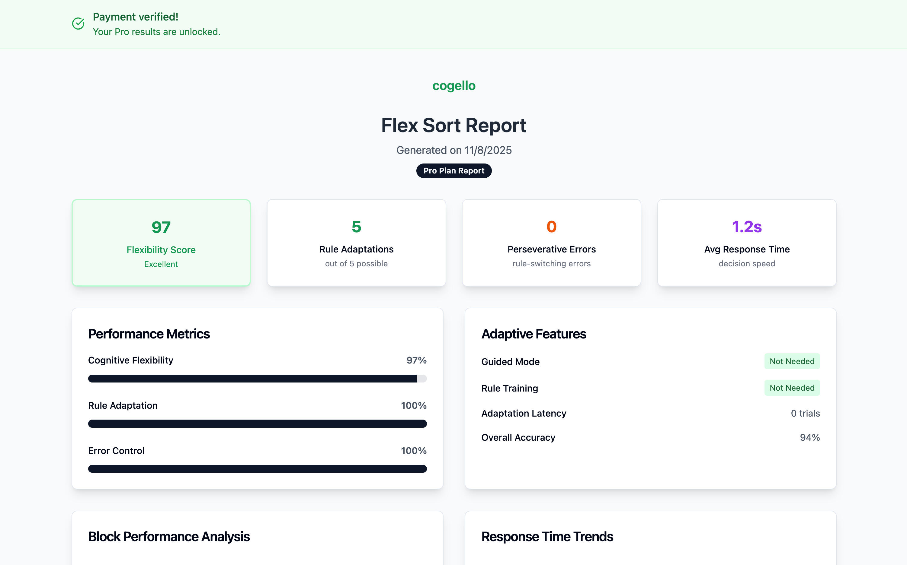 Cogello streamlines clinical and research workflows with self-guided digital tasks that deliver instant performance snapshots.